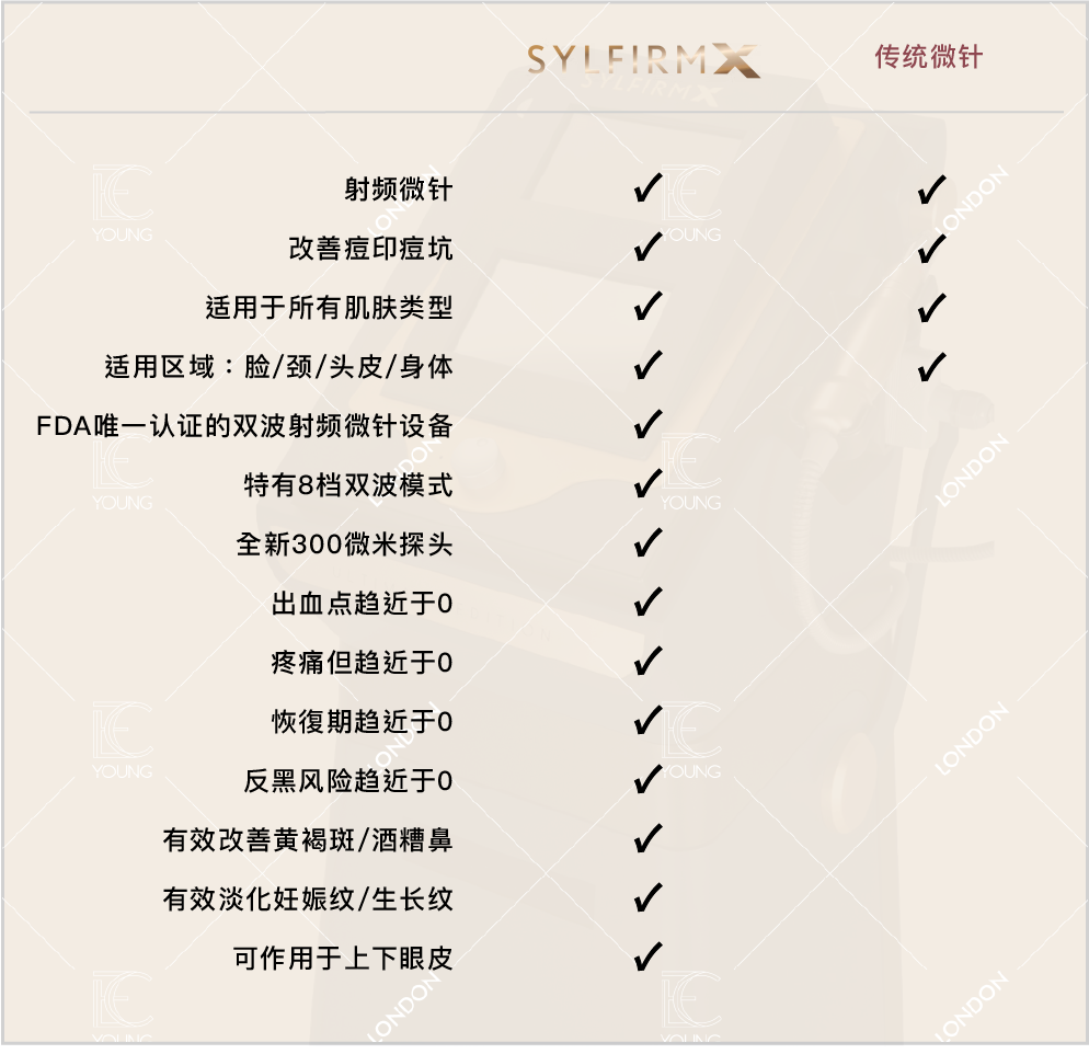 - 黄褐斑和色素沉着: Sylfirm X 的技术特点是能选择性地治疗异常血管和组织,因此在改善黄褐斑等顽固性色素问题方面具有优势。