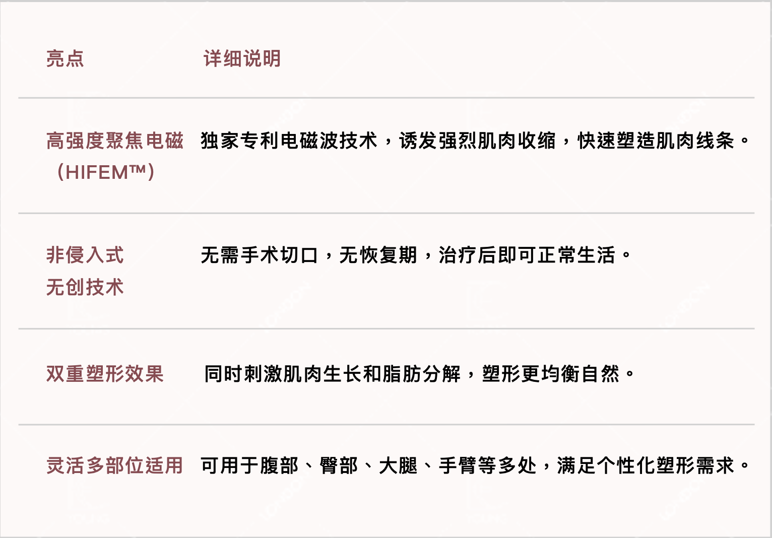 BTL EMSCULPT 美修斯 高强度无创塑肌燃脂系 塑形紧致・激活肌肉・无需运动即见效 全球领先的非侵入式肌肉塑形黑科技,塑造完美线条的理想之选 你是否也面临这些困扰? 运动时间紧张,难以塑造理想肌肉线条? 身材松弛,脂肪与肌肉比例失衡? 想要雕塑身形,却害怕手术风险或恢复期? 那么你一定要了解! BTL EMSCULPT® 美修斯 — 高强度聚焦电磁 (HIFEM)无创肌肉塑形系统 全球唯一利用HIFEMTM高强度聚焦电磁技术,兼顾塑形与紧致的非侵入式肌肉塑形仪器。 添加微信账号:harleystreetec 姓名 电话 电子邮箱 留言咨询 提交留言 > 全球领先HIFEMTM技术,激活肌肉塑造新高度 BTL EMSCULPT® 美修斯通过高强度聚焦电磁波(HIFEM)精准刺激肌肉层,诱发每分钟约2万次的强烈肌肉收缩——远超传统运动强度。 这不仅增强肌肉纤维厚度,促进新生肌肉生成,同时激活脂肪细胞代谢,帮助减少局部脂肪,双效合一,塑造更紧致、更匀称的身体曲线。 BTL EMSCULPTTM 美修斯独家专利技术 HIFEMTM(High-Intensity Focused Electromagnetic)高强度聚焦电磁技术 利用强大电磁场穿透皮肤直达肌肉,诱发超强肌肉收缩,模拟高强度运动效果, 促进肌肉纤维新生和增厚。 同步RF射频技术 结合射频加热,提升脂肪分解效率,促进胶原蛋白生成,实现塑形紧致双重效果。 智能程序控制 根据不同肌肉群设定科学脉冲频率和强度,精准安全,舒适高效。 BTL EMSCULPTTM 美修斯 技术原理 BTL EMSCULPT® 通过HIFEMTM技术直接作用于肌肉层,诱发超强肌肉收缩(称为“超极限收缩 ”),这是常规运动无法达到的强度。这种强烈收缩促使肌肉纤维快速增生和增厚,同时提升局部 基础代谢,帮助脂肪细胞凋亡,双重塑形。整个过程无需侵入皮肤,无创伤、无恢复期,治疗时 有轻微肌肉紧缩感,安全舒适。 BTL EMSCULPTTM 美修斯 四大技术亮点 -BTL 美修斯 治疗案例- BTL EMSCULPTTM 美修斯 独特优势 无需运动即可锻炼肌肉 利用高强度电磁波模拟运动效果,适合繁忙人群或运动受限者。 无创安全,舒适体验 治疗过程舒适无痛,无需麻醉,无恢复期。 效果显著,持久塑形 单次治疗即见肌肉紧实感,4-8周内持续肌肉增厚,脂肪减少,效果可维持12个月以上。 多部位组合治疗 灵活适应不同身形部位,帮助实现整体匀称线条。 BTL EMSCULPTTM 美修斯 适应症 腹部肌肉松弛与赘肉堆积 臀部下垂无力,缺乏曲线感 大腿和手臂肌肉无力、脂肪堆积 想快速塑造肌肉线条,提升身体紧致度 运动不足或术后康复期的辅助塑形 为什么选择EC Clinic London 做 BTL EMSCULPTTM 美修斯? 原厂授权设备,正品可追溯 EC Clinic London 使用全套原装进口 BTL EMSCULPTTM 美修斯设备,附有原厂授权及治疗记录,保证治疗安全有效。 权威医生操作,丰富临床经验 所有疗程由官方培训认证医师亲自执行,团队累积上千例操作经验,熟悉不同体型及需求,确保最佳塑形效果。 定制个性化治疗方案 利用专业体态分析系统,结合客户体质及目标,量身设计专属治疗方案,精准激活目标肌肉群。 术后科学修护,定制护理方案 结合营养指导及科学运动建议,协助客户稳固治疗效果,打造自然健康体态。 多元化贴心服务体验 从初诊评估、治疗执行到术后关怀,EC Clinic London提供多语言团队一对一服务,全程陪同沟通无障碍;无隐性消费、全流程透明清晰,真正实现安心变美。 选择 BTL EMSCULPTTM 美修斯, 开启你的塑形之旅。 在 EC Clinic London,感受科技与自然融合的逆龄力量 立即预约评估, 轻松打造自然健康体态。 -美修斯 的 FAQ- 为什么说一次腹部BTL相当于20000个卷腹呢? 是因为在BTL治疗过程中,使用了高强度聚焦的电磁场技术HIFEM,能量脉冲可以激发20000次肌肉强力收缩,同时加速脂肪代谢,相当于是真正的在运动减脂。 BTL美修斯治疗间隔要多久? 一次BTL美修斯治疗正常耗时30分钟。一般4次为一个疗程,每次治疗间隔2-3天,建议一年做4-5个疗程,健美身材时刻保持。 多久后能看到效果?会反弹吗? 一般一个疗程后就能看到效果,出现肌肉线条。持续性治疗3-4个疗程后,能感觉到脂肪下肌肉逐渐形成,在体脂较低的情况下能轻松拥有马甲线等健康线条。当然平时自己也需要注意饮食健康,是像运动一样不会反弹的。 BTL美修斯治疗是否有危险? BTL美修斯是身体类仪器,有一定强度,因此需要选择正版仪器进行操作,合理设置能量,否则造成肌肉损伤是非常不值的。
