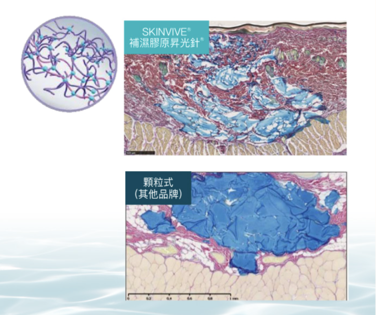 与其他胶原注射区别:SKINVIVE™利用透明质酸直接为皮肤补水,而非主要通过刺激胶原蛋白生成实现皮肤改善。