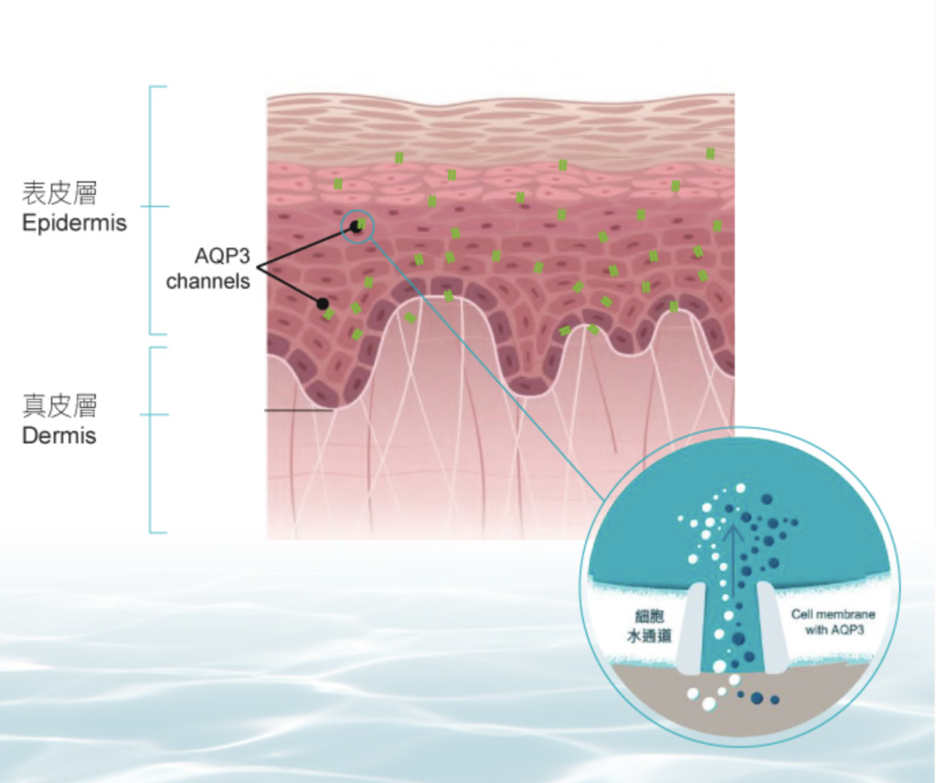激活水通道蛋白:研究表明,SKINVIVE™能显著增加肌肤中的水通道蛋白3(AQP-3)。AQP-3如同肌肤内部的”水闸”,能促进水分与甘油更有效地输送至皮肤表层,从而由内而外保持水润,使肌肤饱满焕亮。